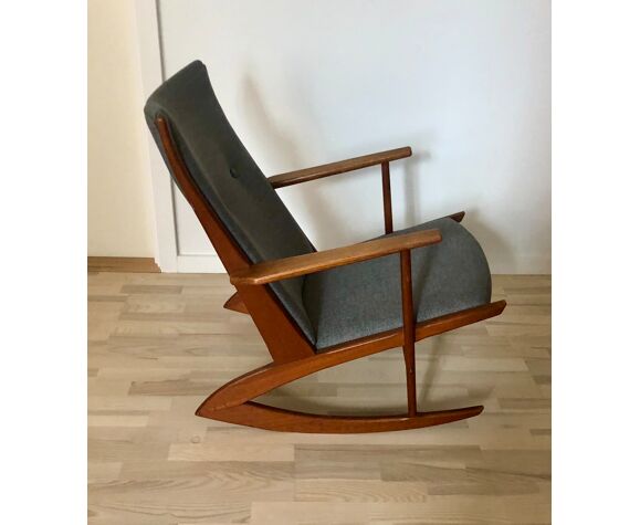 Restored Danish Rocking Chair 50 60s Furniture Wool Beech Wood Selency